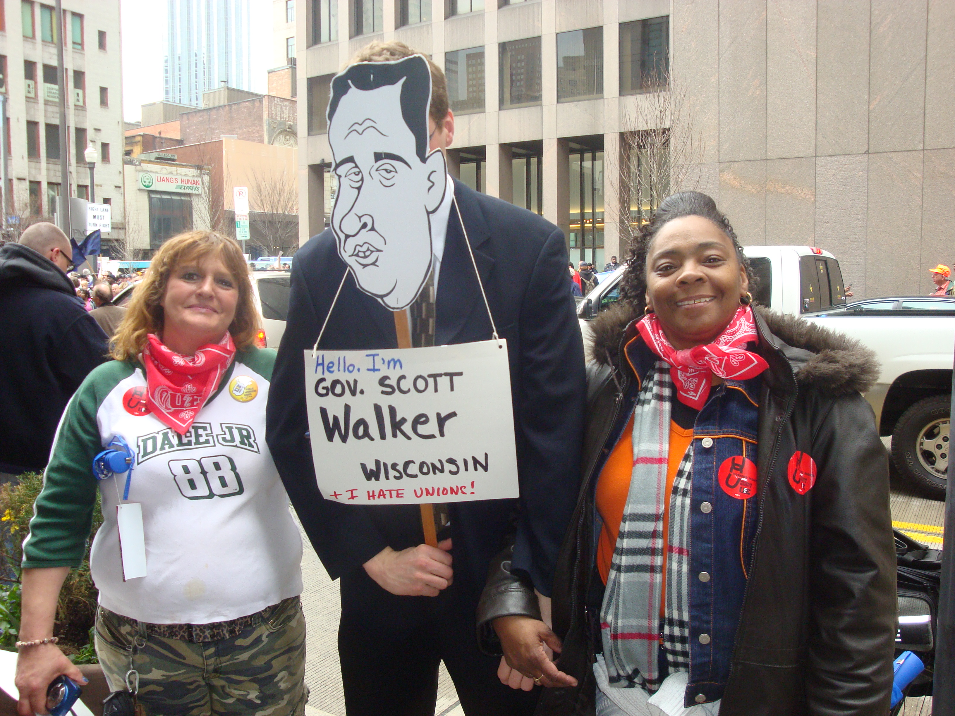 From EQT Plaza, people marched to PA Governor Tom Corbett’s office where the unions put on a tribunal to find Walker, Corbett, and other lawmakers guilty of trampling on workers’ rights. See pictures from both rallies below!